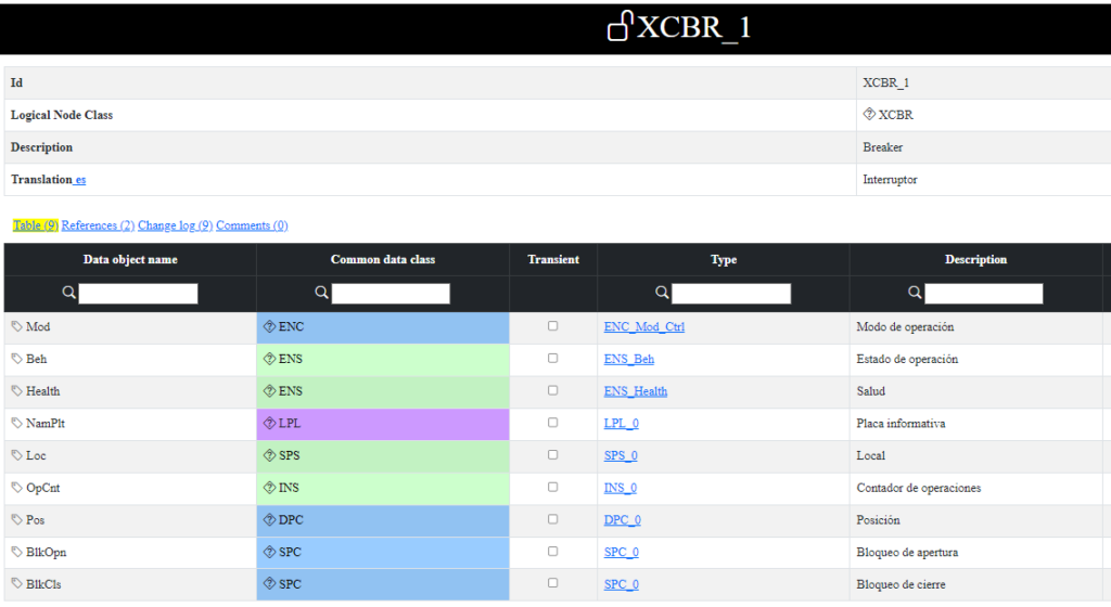 - Componentes eléctricos. Ejemplo: XCBR: Circuit Breaker o interruptor de corte.