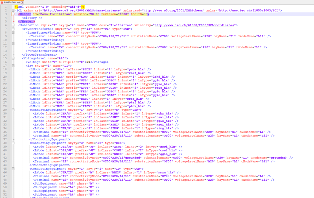 El documento IEC 61850-6 define una sintaxis XML capaz de: